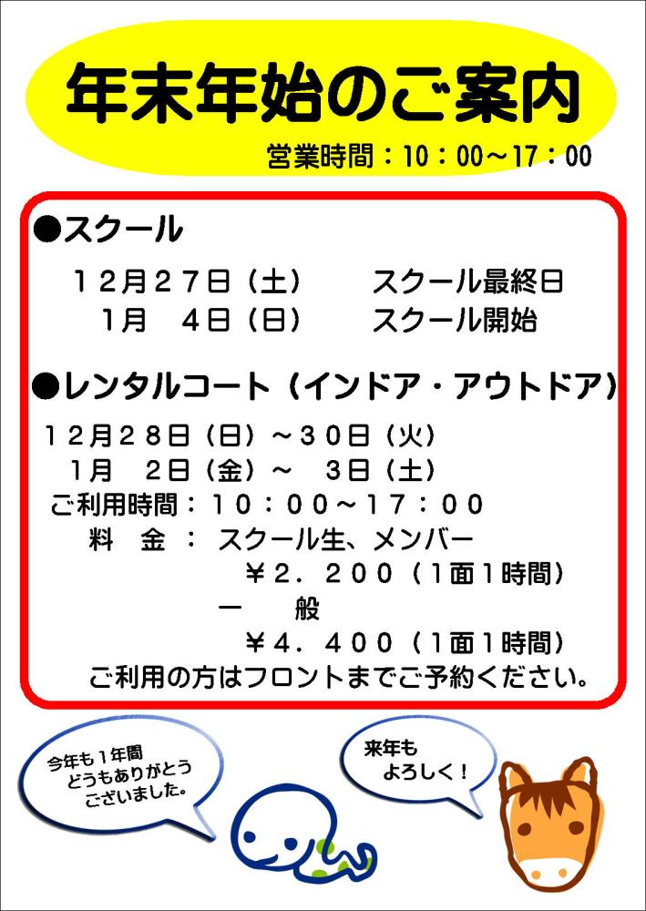 12月28日(日)~30日(火)、1月2日(金)・3日(土)